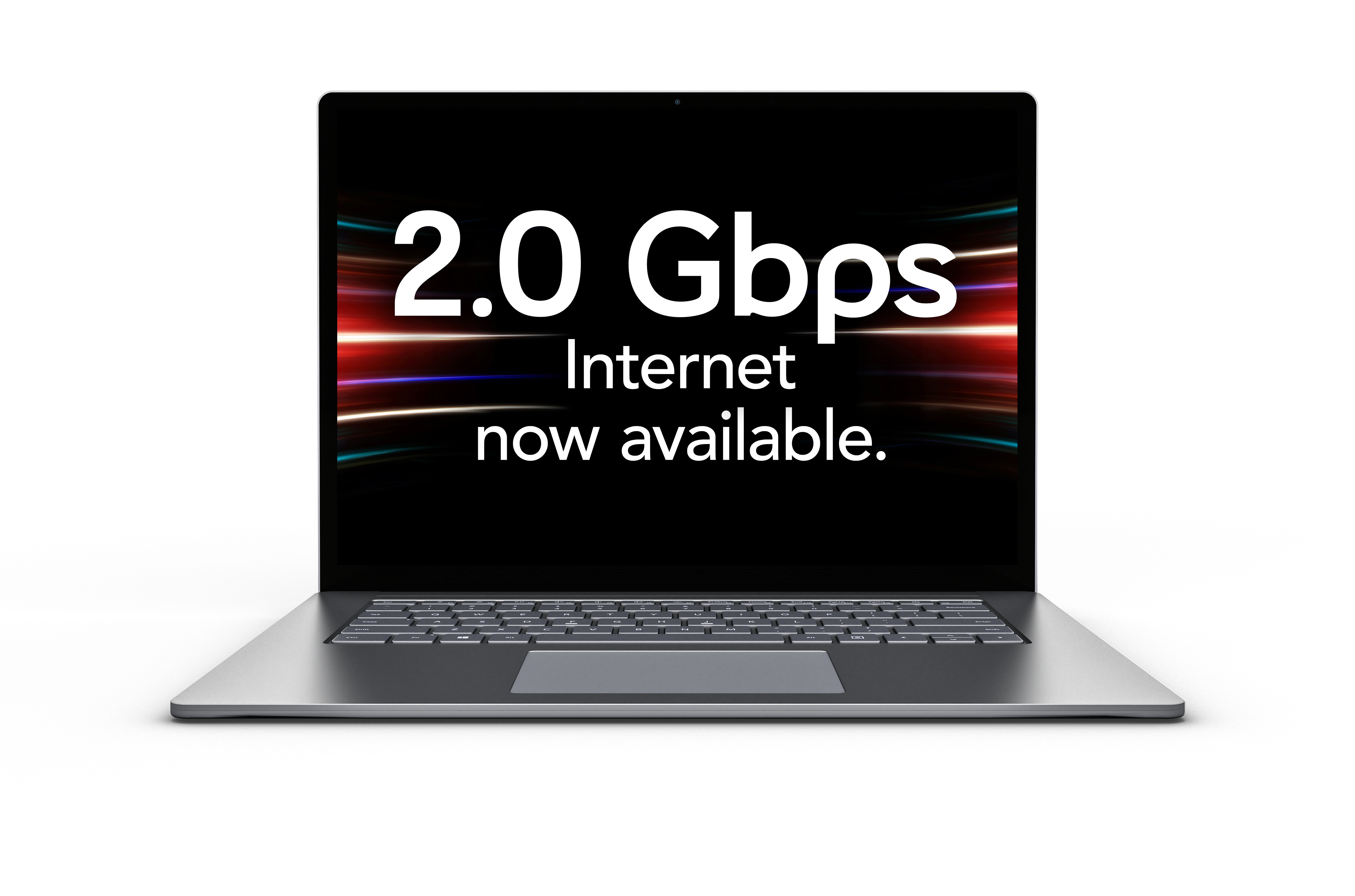 Enjoy download speeds up to 2.0 Gbps and upload speeds up to 50 Mbps. Now available in select areas.